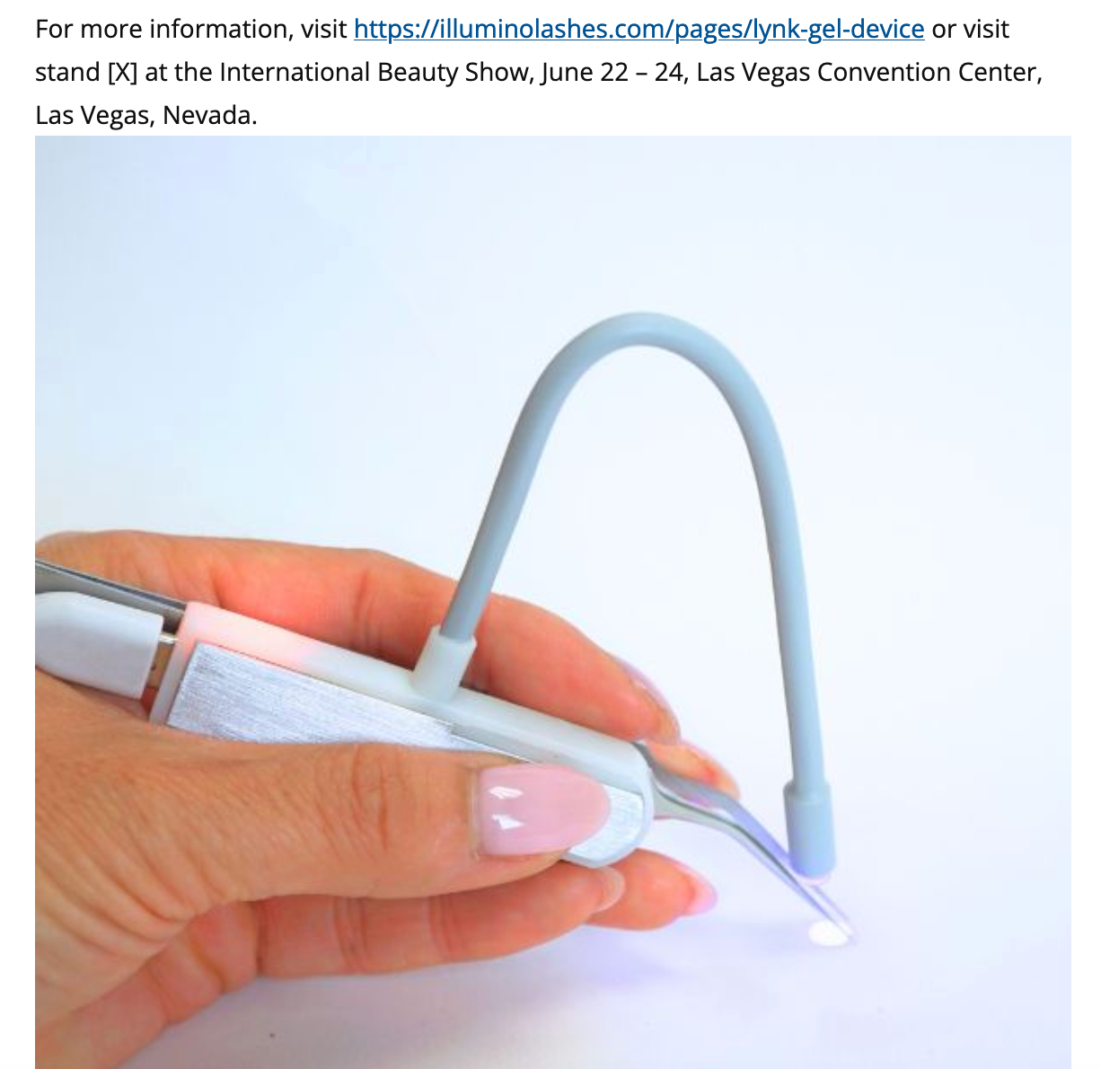 Check out the full article!Next Generation Lynk-Gel 4.0 LED Lash Extension Device Will Launch In Las Vegas At the International Beauty Show.